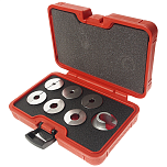 Пластина съемника с отверстиями различной формы подходит для большинства типов муфт. Набор предназначен для замены муфт компрессоров на автомобилях Форд (Ford) FS-6, Крайслер (Chrysler) C-171 и Nippondenso 6P-148. Применяется для компрессоров типов: GM R4, A6, HR-6, DA-6 и V5 A/C. А также для компрессоров Sanden SD505, 507, 508, 510, 575, 708 и 709.