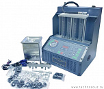 Стенд для проверки и промывки 6 инжекторов в ультразвуковой ванне. Автоматический слив тестирующей жидкости. Работает от сжатого воздуха. Имитация работы форсунок происходит с помощью встроенного электронного блока управления форсунками. В комплект поставки входит ультразвуковая ванна объемом 2,0 литра с подогревом и мощностью генератора 60 ВТ.
