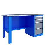 Верстак однотумбовый поставляется в разобранном виде. Нагрузка на столешницу до 600 кг. Стандартный цвет: корпус - серый глянец RAL 7030, ящики и двери тумб - синий RAL 5017. Размеры:855x1600x700 мм. Вес: 84 кг.