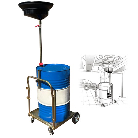 Установка для слива/сбора «отработки», антифриза в бочки 60÷220л. на подкатной анодированной тележке. Для любых транспортных средств, вывешенных на подъёмнике. Высота регулируется зажимом 1450÷2050мм. Фиксатор бочки на тележке. Сетка для улавливания мелких деталей, фильтров и предотвращения разбрызгивания. Поворотная воронка 360⁰ со смещённым сливным отверстием. Шаровой кран для контроля слива. Обрезиненные колёса большого диаметра для не ровных полов. Контроль заполняемости бочки через отверстие для воздуха.