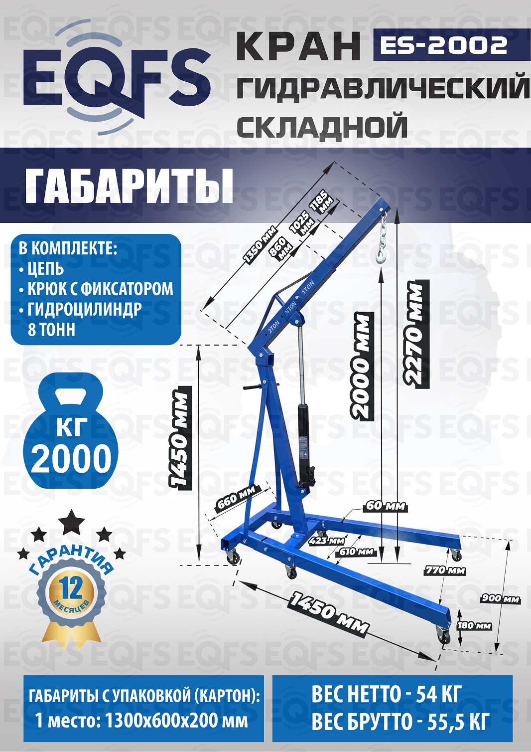 Особенности конструкции ES-2002 кран гаражный гидравлический складной 2 тонны: