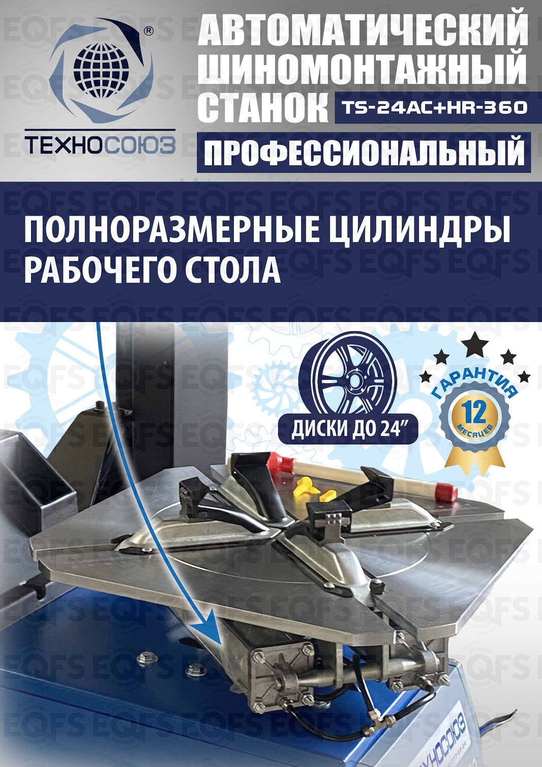 Автоматического шиномонтажного стенда TS-24AC+HR-360. В комплекте взрывная подкачка + третья рука для работы с низкопрофильными шинами и RanFlat! Для колес легковых автомобилей, легких грузовиков, микроавтобусов и коммерческой техники. Для дисков: внешний 10÷21”, внутренний 12÷24”. Напряжение 220/380В. Гарантия 18 мес. – наш монтаж, 12 мес. – самостоятельная установка.