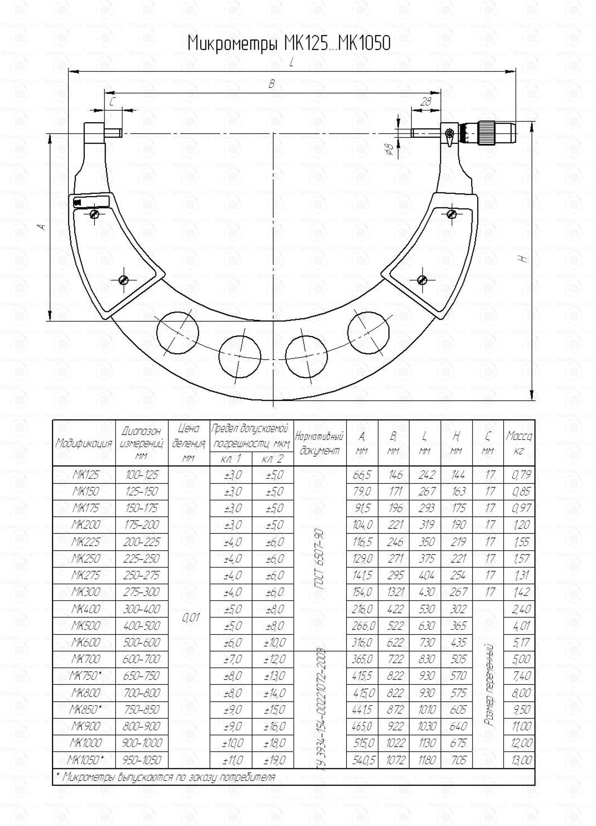 Цена деления 0,01 мм. Диапазон измерения от 700-800 мм. Для измерения наружных размеров изделий. Измерительные поверхности микрометра оснащены твердым сплавом. Микрометры укомплектованы установочная мера 2 шт. Класса точности 1. ГОСТ 6507-90. Поставляется в двух вариантах с поверкой и без поверки!