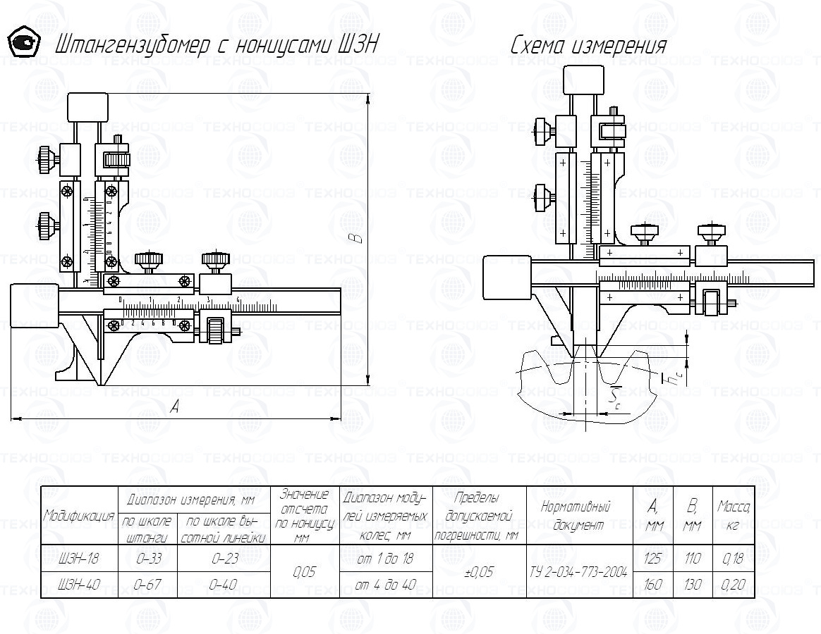 Пример условного обозначения штангензубомера типа ШЗН-18 - Штангензубомер с нониусами ШЗН-18 ТУ 2-034-773-2004.